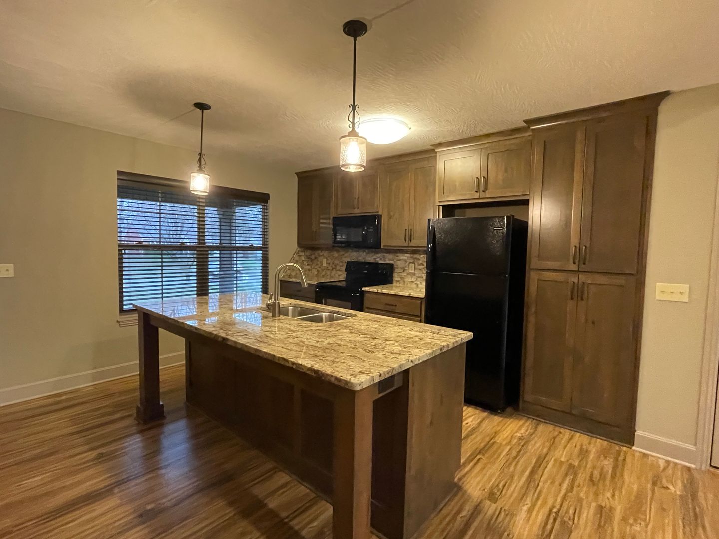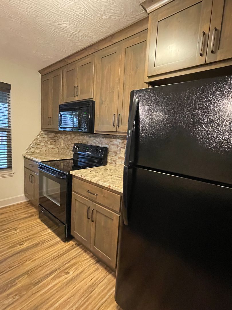 Gorgeous and upscale 2 bedroom all brick home available! This beautiful home features 2 large bedrooms, 2 full baths, open floor plan, and large fenced backyard. Granite Counters in kitchen and bathrooms! Kitchen features custom cabinets, granite counters and includes stove, microwave, dishwasher and fridge. Huge master bath with walk-in closet and walk-in shower! Don't miss out on this one! Prefers no pets.
